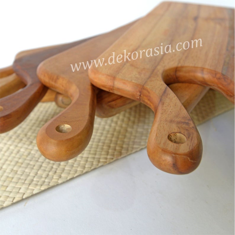 This Antique Teak Wood Cutting Board is ideal for use as a chopped board meat, cheese or vegetable, made of teak wood equipped with a handle that is uniquely shaped so that it is comfortable to use. Teak Cutting Board, great for everyday use and special events or can be used as a home decoration or gift.