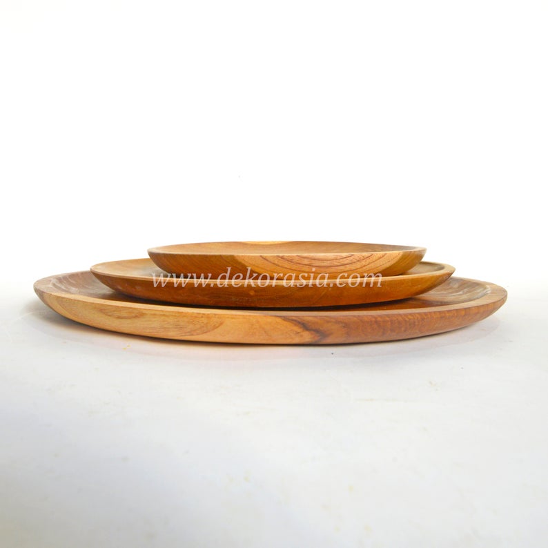 Teak Wood Round Plate Diameter 9.8 to 13.8 inches, Dinnerware Set Dishes & Plates